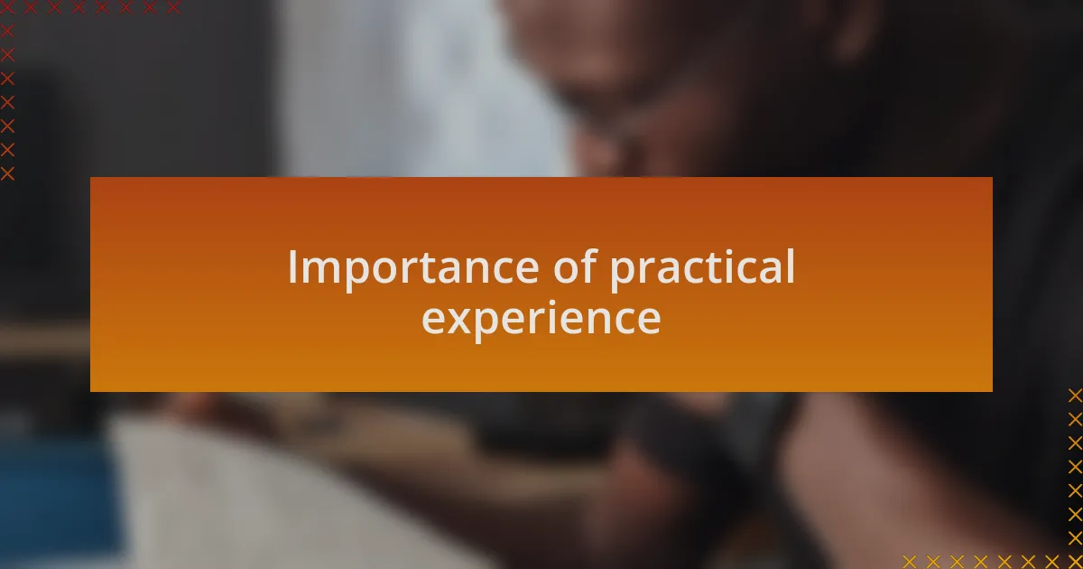 Practical experience is a catalyst for growth, especially in DIY home improvements. When I first tackled building my own shelves, I learned far more from the actual cutting and assembling than any guide could ever teach. There’s a certain thrill in realizing that every notch and screw contributes directly to the final product, making the experience not just informative but also deeply satisfying.